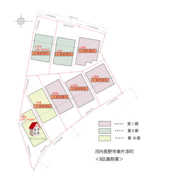 SANSEED 河内長野市 東片添町〈あと1区画〉販売中 三日市町まで徒歩4分♪通勤、通学至便♪小学校も徒歩分で安心♪全8区画34坪~45坪でひろびろ2階建が叶います♪